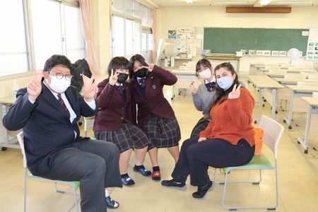 ALTのブリアナ先生と一緒に週1回(木曜日の15:40くらいから1時間程度)LL教室でおしゃべりをしたり、ゲームをしたりしています。時々お菓子もあるよ♪
