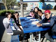| 3年1組 北野良祐 アメリカに着いて思ったことは、やっぱりアメリカは何もかもが大きい国だ。道路、車、食べ物、飲み物など、様々なものが大きかった。また、生活して一番に思ったことは、思っていた以上にアメリカでは水がとても大切な飲み物であるということだ。アメリカの料理は素材のそのままの味が多く、調味料が日本ほどないような気がする。ホストファミリーと会った時にとても優しく笑顔で迎えてくださってとても嬉しかった。普段の生活のなかでも、食事のことや体調のことを気遣ってくださった。出来事や家族のことなどたくさん話すことができて嬉しかった。アメリカに着いて次の日のピクニックでは他のホストの人たちと一緒に遊んで、とても楽しかった。その後で、ラディスと僕とザックでダウンタウンを廻った。様々な国のレストランがあって、色んな国の人が住んでいることに気付いた。学校はとても楽しいところで、日本語の授業では僕たちの紹介を日本語で上手にしてくれた。フラワーアレンジメント、経済、写真、歴史、数学、ステージクラフトなど様々な授業に参加したが、ジャズの授業が一番良かった。やはり英語は速く、内容はあまり分からなかったが、本場の英語に触れることができて良かった。朝7時半から始まるので早かったが、3時頃に終わり、早く帰ることができた。陽射しは日本と比べてとても強く、蒸し暑くはなかった。教育長はとても優しく、話す英語もとても分かりやすかった。緊張したが、質問もできて楽しい時間を過ごせた。デービス大学は大きく、様々な施設があった。小学生の反応がとても可愛く、紙芝居を頑張った。折り紙にみんなが喜んでくれて良かった。ザックくんの家に移動してから、オールドサクラメントに行き、金が発掘されて栄えていた頃の歴史を聞いた。カリフォルニア州議事堂では州知事のことなどを学んだ。日々、歩いていてもたくさんの発見があった。例えば、地下に電線があったり、日本と異なる信号、自転車専用レーンなど、驚きでいっぱいだった。帰って来て、もう一度行きたいと思っている。まだまだ知らないことや知りたいことがたくさんある。今回の研修は、僕にとってとても大きな経験となった。 3年1組 高城優城 今回が初めての海外旅行でした。初めは自分の英語が通じるかとても不安でした。ホストファミリーと対面した時にはとても緊張しました。言葉が違うのでコミュニケーションでとても苦労しました。けれど、ホストファミリーはゆっくり話してくれたり、言葉を書いてくれたりして支えてもらっているうちに、だんだんと話せるようになりました。デービス高校の授業は日本の授業とは異なり、自分の意見をはっきり述べる場面が多かったです。日本語の授業では、デービス生と日本語で会話をしました。特にホストのレミュエルの友人のアレックス君がとても日本語が上手でした。演劇の大道具を作る授業、ブラスバンドの授業にも参加し、とても面白かったです。ホストファミリーとは、車と電車とバスを乗り継いで科学博物館へ行きました。日本にいない魚や生き物がたくさんいたり、宇宙の映像を見ました。サクラメントの鉄道博物館で歴史を学んだり、ジェリーベリーの工場見学をしました。アイススケートも体験し、転ぶことなく滑りました。日本では学べないことをたくさん学び、素晴らしい思い出を作らせてくれた両親、菅野先生、そしてホストファミリーに感謝し、デービスで学んだことを今後の自分に活かしていきたいです。 3年1組 林咲希 私がデービス高校に短期留学をしようと決意したのは、英語で外国人とたくさん会話をしたり、日本とアメリカの違いを見つけてみようと思ったからです。しかし私は外国へ行くのが初めてだったので何も分からずとても不安でした。それでもデービスに行って自分ができることをやっていこうと思いました。私のホストファミリー、Jahaさんの家族はとても優しくていろいろと話しかけてくれました。私も英語で話をして理解してもらうのは大変でしたが、何とか理解してもらおうと頑張りました。デービス高校はとても広くたくさんの教室があり、道に迷いそうになりました。デービス高校の生徒は黒人や白人などたくさんの種類の外国人がいました。私は日本語のクラスで自己紹介をしたり、お正月を紹介するプレゼンテーションをしたりしました。プレゼンでは、お年玉などのクイズをしたり、けん玉をさせてあげたりしました。授業では英語がさっぱり分かりませんでしたが、図や映像を見せてくれたものは何となく理解できました。デービス高校の生徒たちとたった5日間しか過ごせませんでしたが、おしゃべりをしたり、写真を撮ったりしたことはとても良い思い出になりました。この留学を通してたくさんのことを経験し、学びました。日本とアメリカの違いで一番印象に残っていることは、授業の時みんながちゃんと先生の話を聴き、手