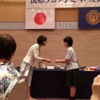 7月20日(金)せとうち児島ホテルで国際ソロプチミスト児島の助成金贈呈式に出席させていただきました。国際ソロプチミスト児島では継続奉仕事業として地元の高校のボランティア活動に対して助成金を贈呈されています。当日は倉敷翔南高校と本校の代表者がそれぞれの学校の活動報告を行い、その後新会長の戸田久代様より助成金を贈呈していただきました。本校代表として2年1組本常陽咲さんと3年1組中奥あみさんが出席し、本常さんが昨年度のボランティア活動の報告を、中奥さんが本年度の新たな取組みと助成金の使い方の報告をしました。本校ではボランティアメイトにかける保険料、ボランティアメイトのベストの維持管理費、エコキャップの運搬費などに助成金を使わせてもらっています。助成金をありがとうございます。今後も有意義に使わせていただき、本校のボランティア活動をもっと活性化させようと思います。