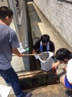 猛暑の中、流れる汗をそのままに一生懸命取り組む生徒。明るく周りを盛り上げながら力強く土のうを運ぶ生徒。「女子も来てくれたんか!」と地域の方にも声をかけていただいたり、差し入れをいただいたりしました。作業を見守り支えて下さった皆様、本当に有難うございました。