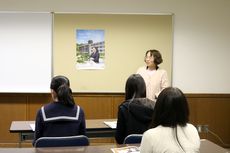 本校の入試の概要、部活動、進路実績等についての説明の後、本校在校生 西坂汐音さんが、鷲羽に通って抱いている感想や今後の進路実現に向けて努力を続けていることについて、頼もしく語ってくれました。