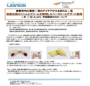 2020 年 2 月 18 日 / 最終更新日時 : 2020 年 2 月 19 日 washu01 わしづかみ ぜひお買い求めください! 3年次 ビジネスモデルの生徒が参加した「くすのきマルシェ」から生まれた商品が、本日2月18日(火)より、中四国地方のローソンで販売されます。是非ともお買い求めください! ↓詳しくは下画像をクリック↓