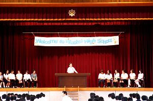 昨夜午後8時過ぎ、アメリカ・カルフォニアのデービス高校を乗せたバスが本校に到着しました。今日の午前中は児島の文化を学ぶために野崎邸を見学、塩づくり体験しました。午後からは体育館で歓迎セレモニーが行われました。