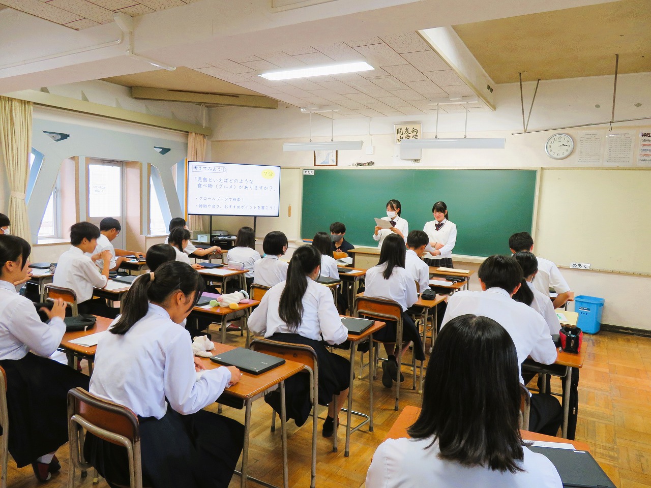 ビジネス科では、「観光ビジネスの授業を体験しよう」という講座で、実際に児島の観光資源をもとに、観光ツアーを考えるという内容で行いました。