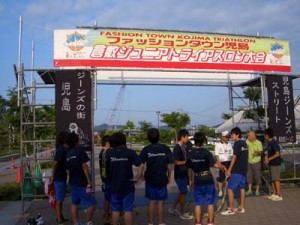 倉敷ジュニアトライアスロンをボランティアとして支える鷲羽高生
