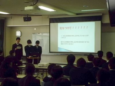 の4つのグループに分かれ、それぞれの課題をどのように解決し何を得たのかを、プレゼンテーションソフトを駆使したり、実演VTRを交えたりしながら2年次生へ発表を行いました。