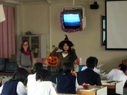 10月19日(火)英語表現の授業で、ALTのメイヴ先生にハロウィンについて教えていただきました。日本では10月31日(日)に行われる民族行事がハロウィンです。生徒達はメイヴ先生からハロウィンの歴史や「トリック・オア・トリート」と唱えて近くの家を一軒ずつ訪問することなどを学びました。時折、門間先生との寸劇があり、楽しくハロウィンを題材とした英語の表現方法を学習していました。